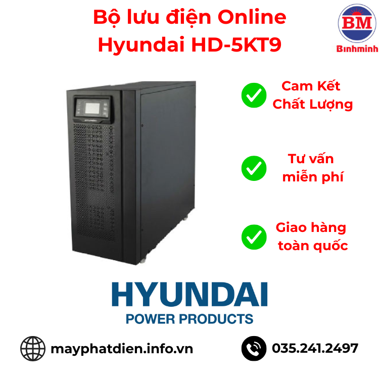 Bộ lưu điện UPS Online Hyundai HD-5KT9 với công suất 5KVA/4.5KW chính là giải pháp toàn diện để bảo vệ hệ thống máy chủ, thiết bị mạng và các thiết bị điện tử quan trọng khỏi mọi vấn đề về nguồn điện. Với công nghệ double conversion tiên tiến, HD-5KT9 không chỉ cung cấp nguồn điện dự phòng mà còn lọc sạch hoàn toàn nhiễu điện, đảm bảo thiết bị luôn nhận được điện áp ổn định tuyệt đối.